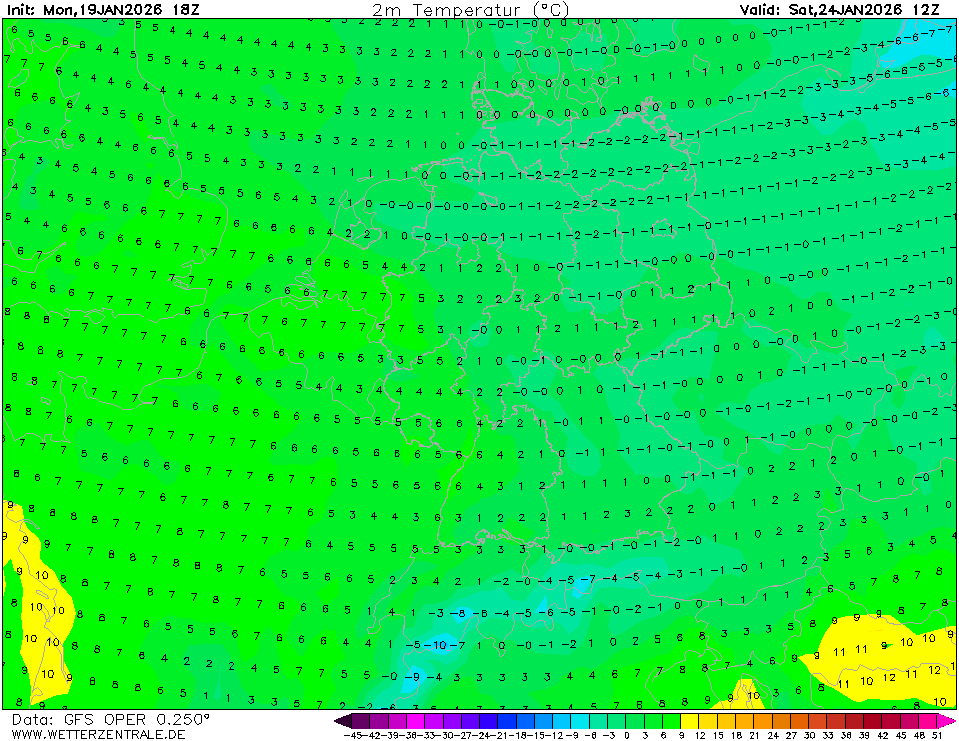 ECM szerdára 4-5 fok, GFS 0-2 fok.
