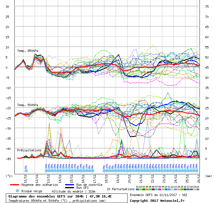 Az elmúlt 2-3 nap modellfutásai alapján már elengedtem a hétfő-keddi mediterrán ciklont, ám most a GFS kontroll és "alfutásai"(P1-P20) újra kecsegtetőek. Míg tegnap egy tag sem adta a kevésbé délre mozgó medit, addig most a tagok fele és a kontroll is olyan verzióval számol amely szerint esély lenne a ciklon kedvezőbb elhaladására, reményt adva egy Kőszegi-hg -s hóhelyzetre. Izgatottan várom az esti futásokat. Többször megfigyeltem már, hogy a GFS főfutásán visszaköszön valamilyen formában az egyel korábbi kontroll és altagok verziói, amolyan sok lúd disznót győz effekttel