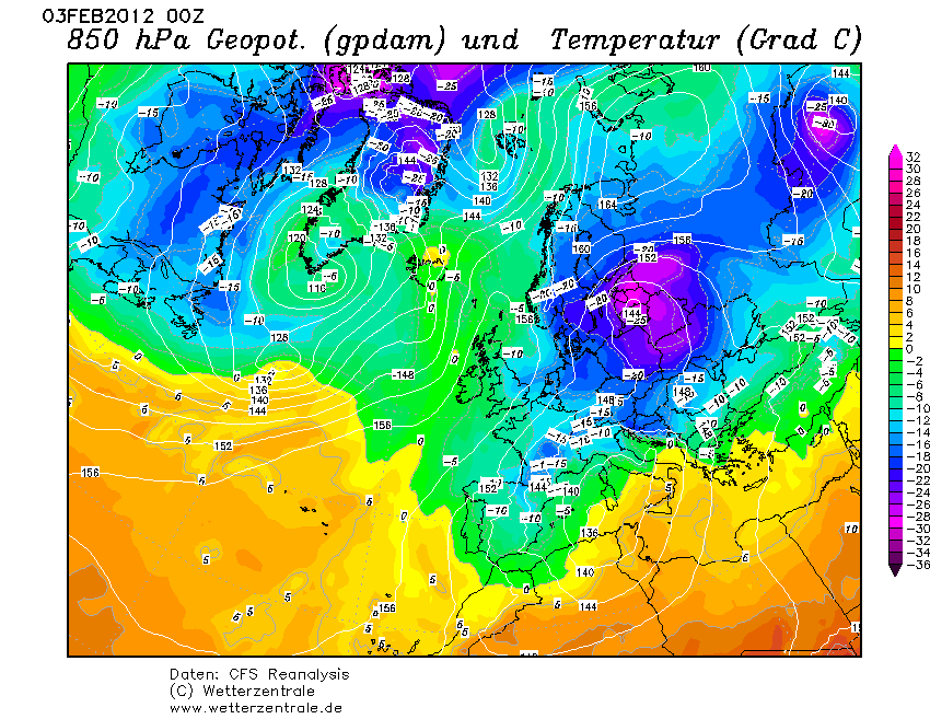 Azt hiszem, a geopotenciálról nem sokan tudják, hogy micsoda, értelmezni meg még kevésbé képesek. Én se akarok okoskodni ezzel, meg nem is én vagyok a legkompetensebb ember a magyarázatra (meg úgysem olvasná el senki) Végletesen leegyszerűsítve csak annyit mondok, hogy a geopotenciál anticiklonokban rendszerint magas, ciklonokban alacsony. Ha anticiklonban is van alacsony geopotenciálú terület, ott HIDEG van. Én ezt szoktam figyelni. Kis gyakorlattal a geopotenciál+izobár térképből következtetni tudunk a T850 eloszlásra.
