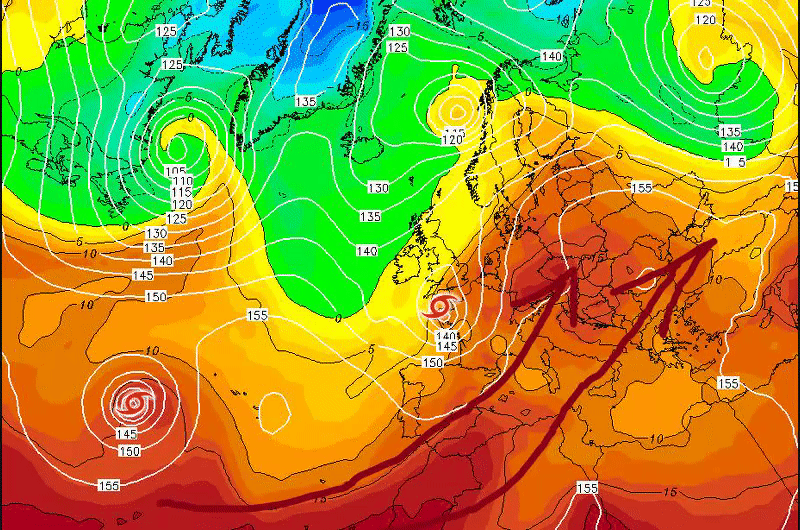 Ebből a mostani meleg, magasnyomású időből könnyen lehetne hideg, változékony, csapadékos idő. Persze ez csak egy lehetőség.