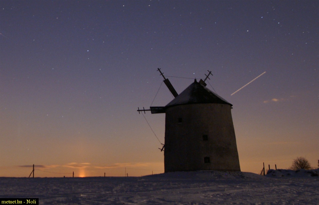 | Leírás: Holdoszlop holdkeltekor a hófödte tési fennsíkon | |