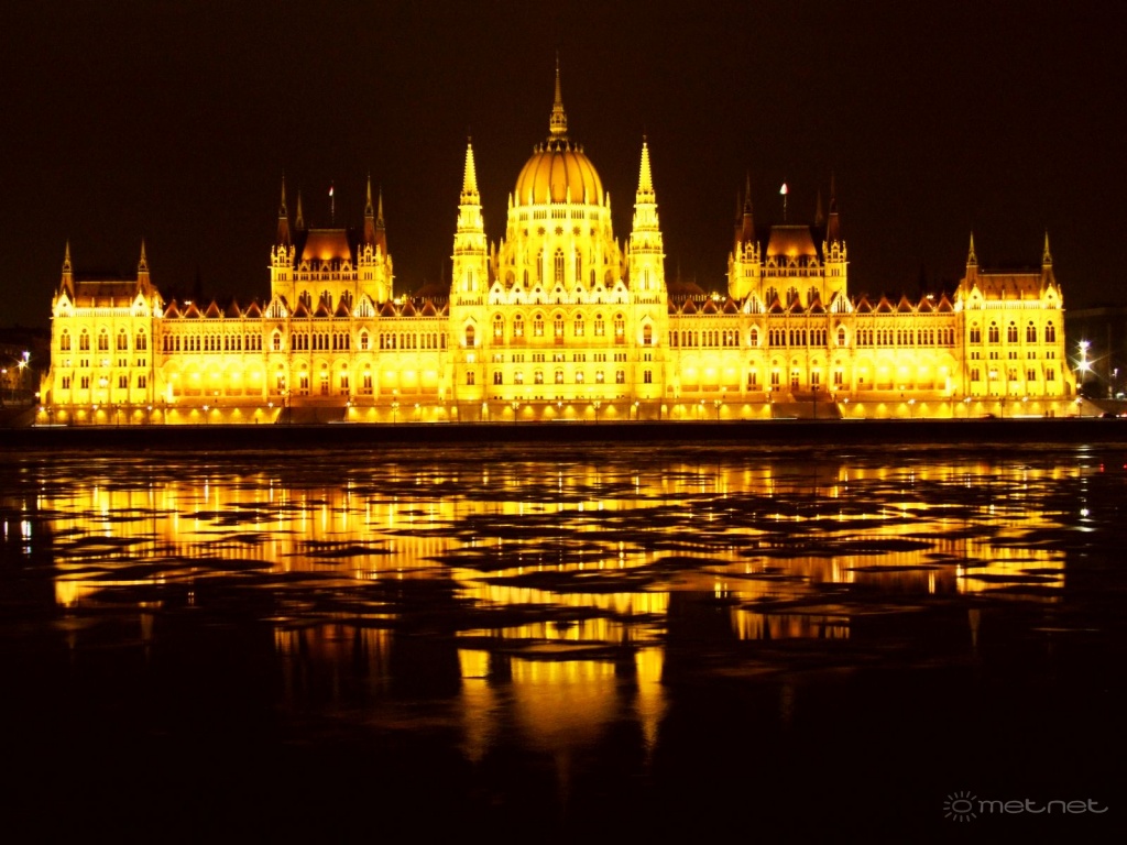 | Leírás: Az Országház este jégzajláskor. | |