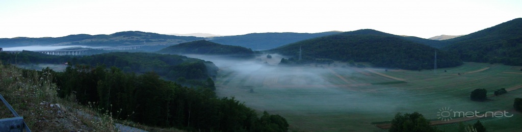 | Leírás: Ködfoltok a völgyben hegyvidéki területen, egy autópálya melletti pihenõbõl 3-án kora reggel. | |