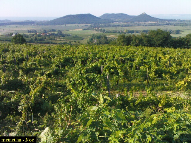 | Leírás: Szent György-hegyi szõlõk, háttérben Szigliget | |