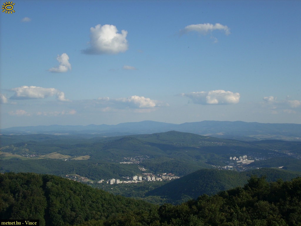 Leírás: Kilátás a Karancsról (729 m) Salgótarján felé, illetve a távolban a Mátra.
