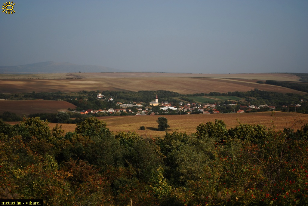 Leírás: Rózsaszentmárton a Somlyóról, háttérben a Sárhegy.