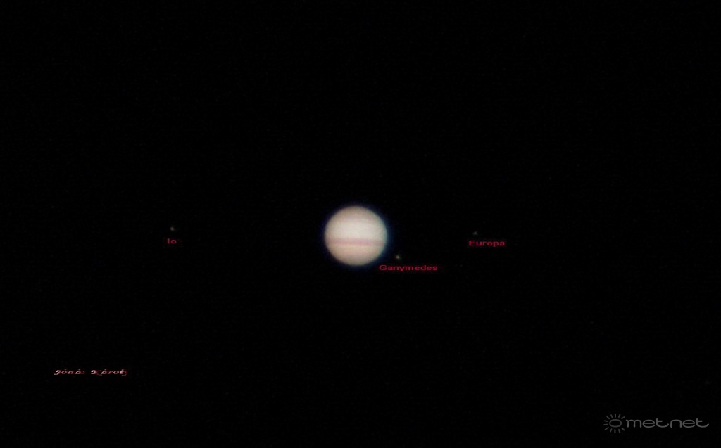 Leírás: A Jupiter és három holdja.