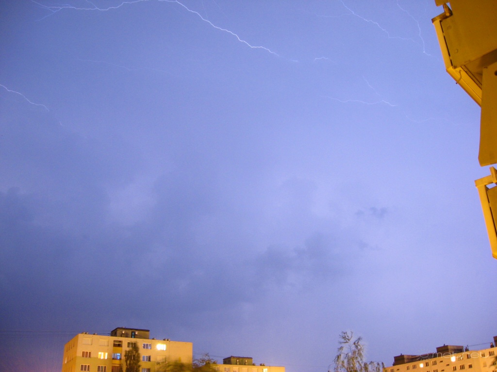Leírás: A várostól DK-re, majd a városon áthaladó zivatar villámai.