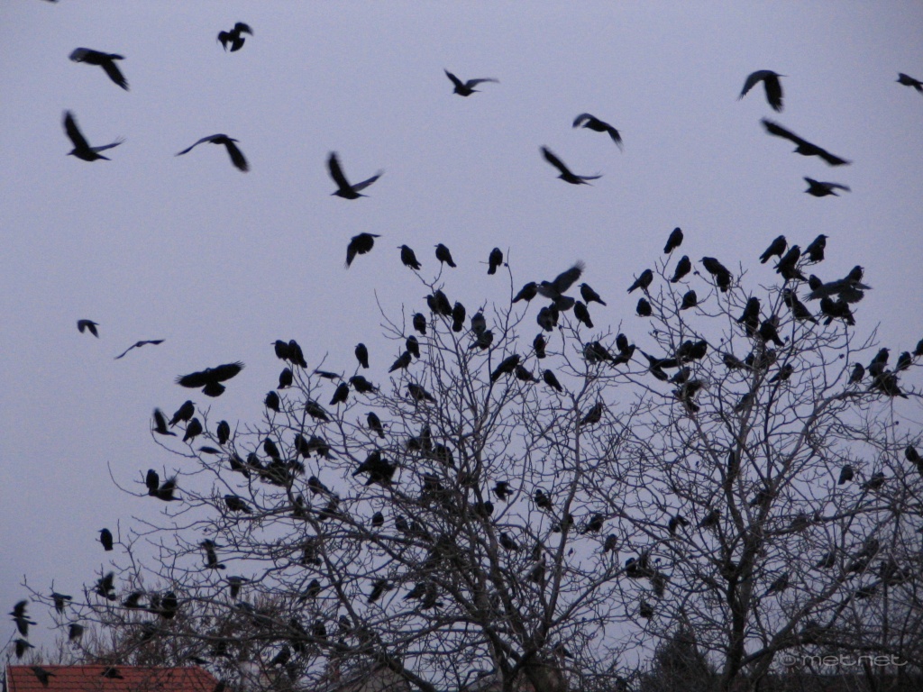 Leírás: Varjak, megszállták a diófát és környékét!