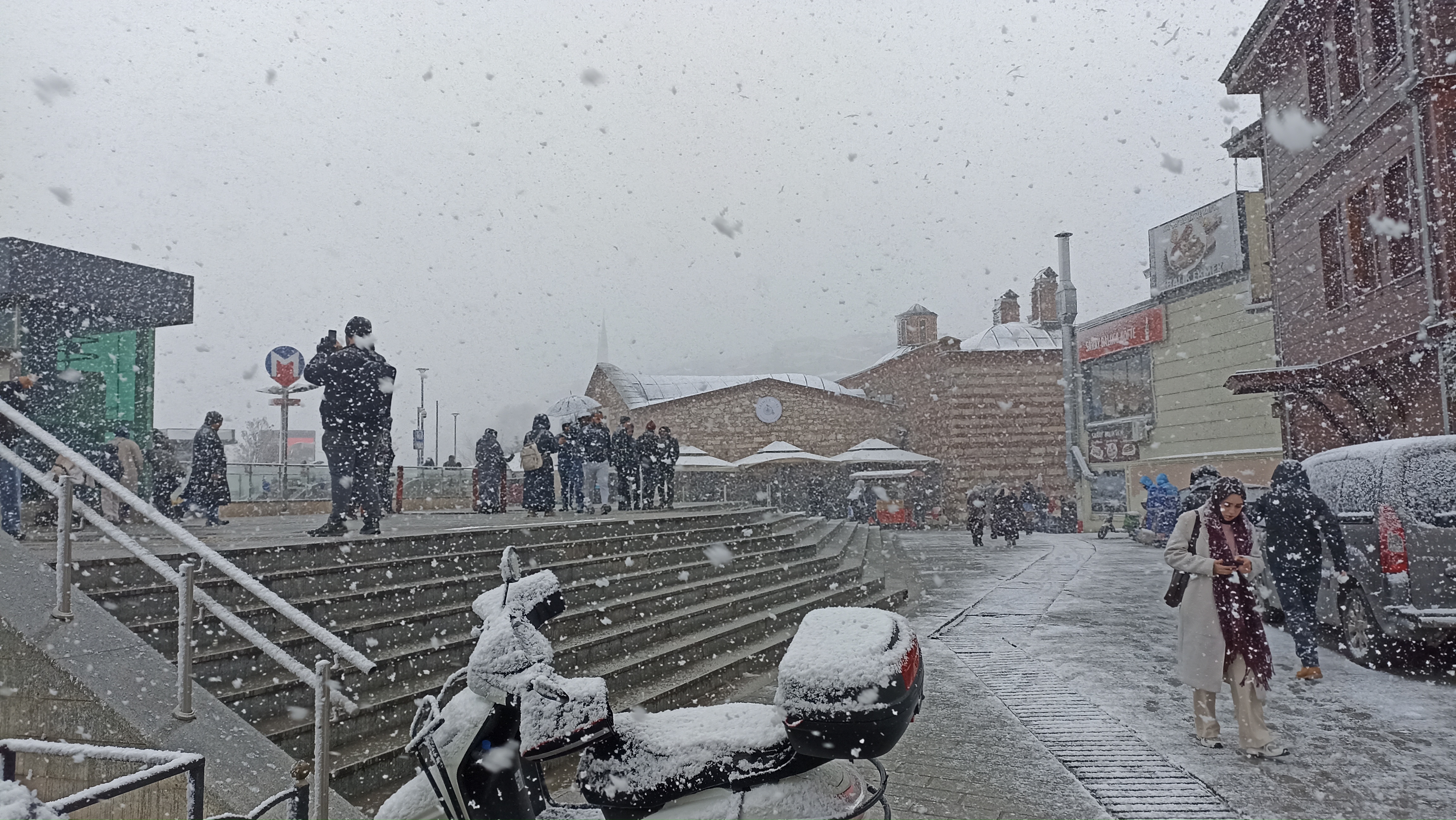 Itt is tartja magát a tél. Csak 1,7 fok volt délután a max. Egészen szürreális látvány a boltok előtt parkoló csomó szánkó látványa