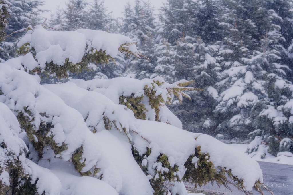 De szépen látszik, hogy a havazás előtt végig enyhe idő volt, zöldellnek a fák.