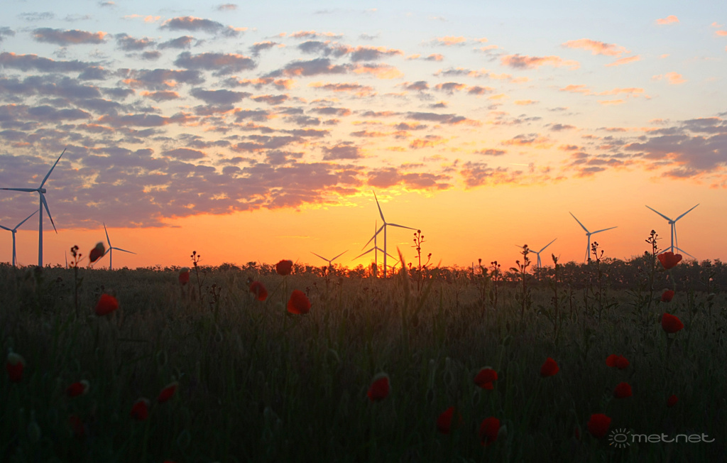 | Leírás: Napkelte pipacsokkal és szélkerekekkel | |