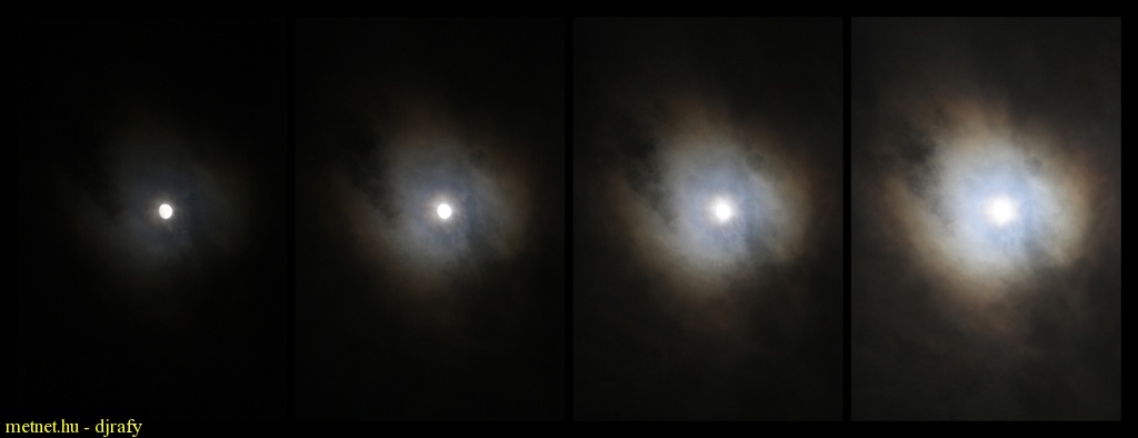| Leírás: Holdkoszorú 1/5, 1/2, 1 és 2 másodperces expoziciójú képen. | |