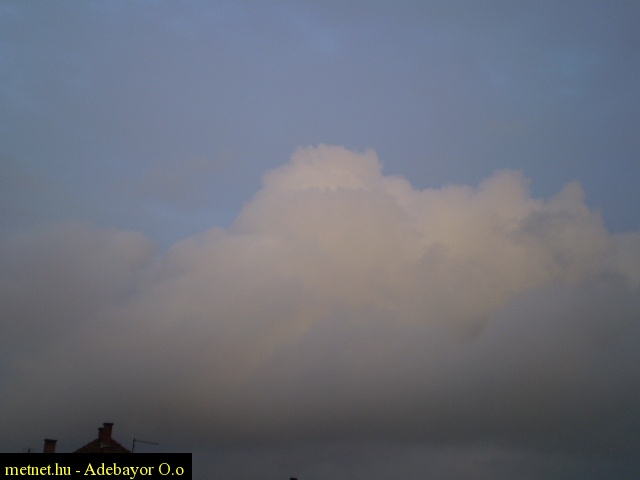 | Leírás: Gomolyfelhõk, a nyugvó nap már áttetszõdni látszik a felhõzeten. | |
