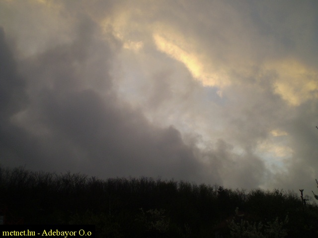 | Leírás: Gomolyfelhõk, a nyugvó nap már áttetszõdni látszik a felhõzeten. | |