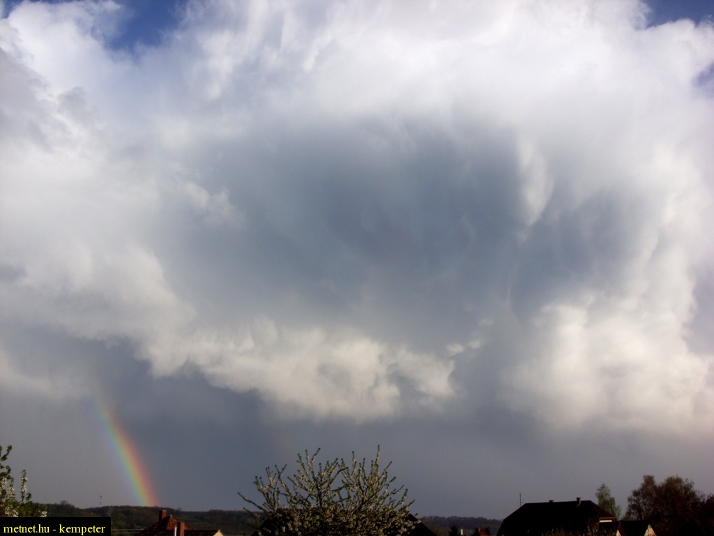 | Leírás: Szivárvány és zivatarcella. (a fényképezõ órája még a téli idõszámításban "jár") | |