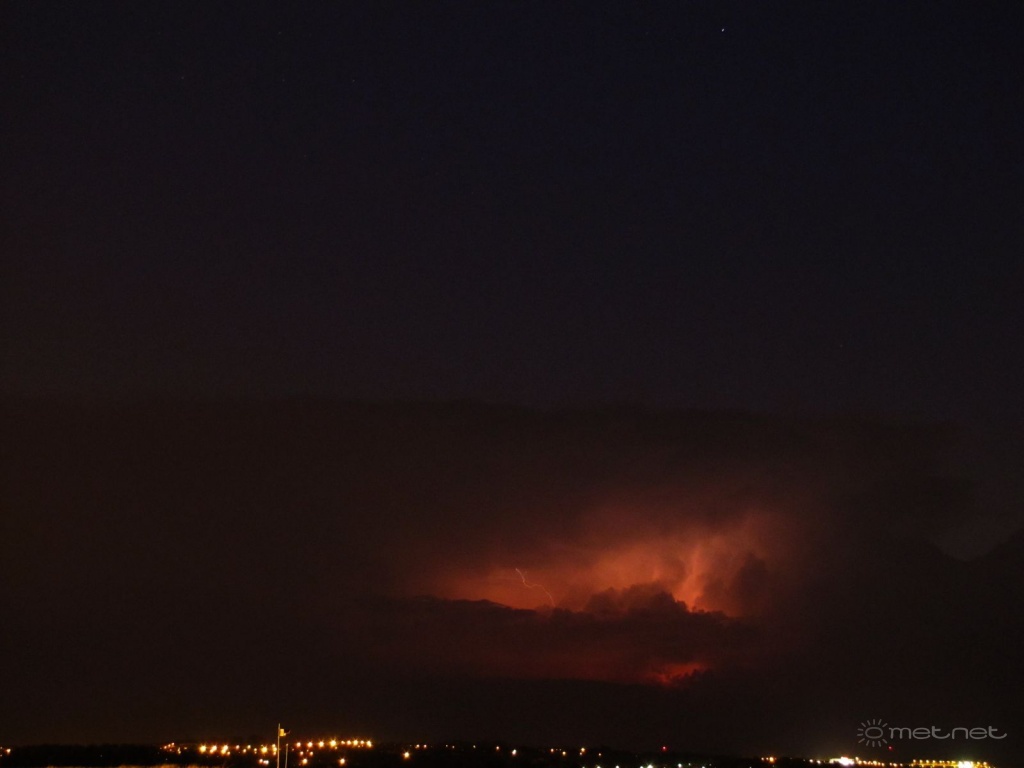 | Leírás: A Budapesttõl K-Ek re kialakult éjszakai zivatarlánc hátoldala. | |