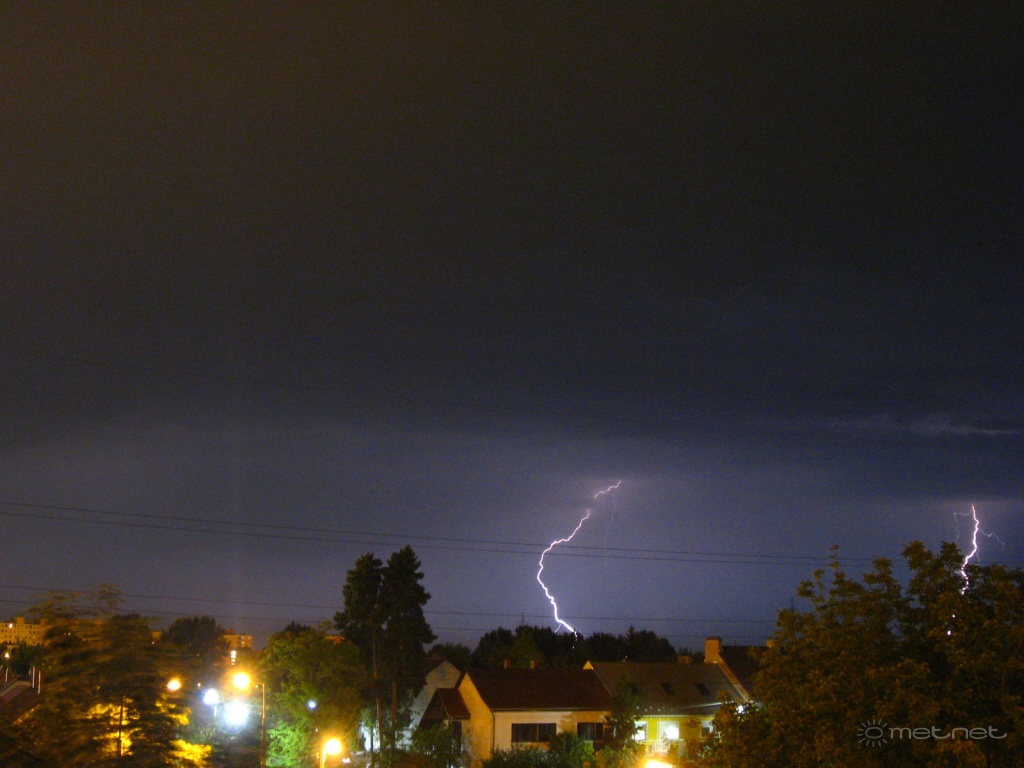 | Leírás: A Szegedtõl nyugatra elvonuló zivatar villámai. | |