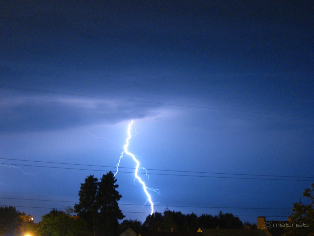 | Leírás: A Szegedtõl nyugatra elvonuló zivatar villámai. | |