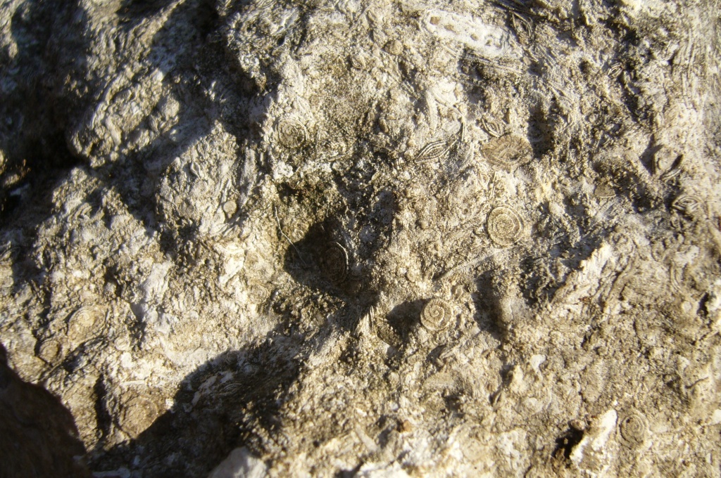 | Leírás: Eocén korú óriás egysejtûek (Nummulites nemzetség) és egyébb édesvizi élõlények maradványai. | |