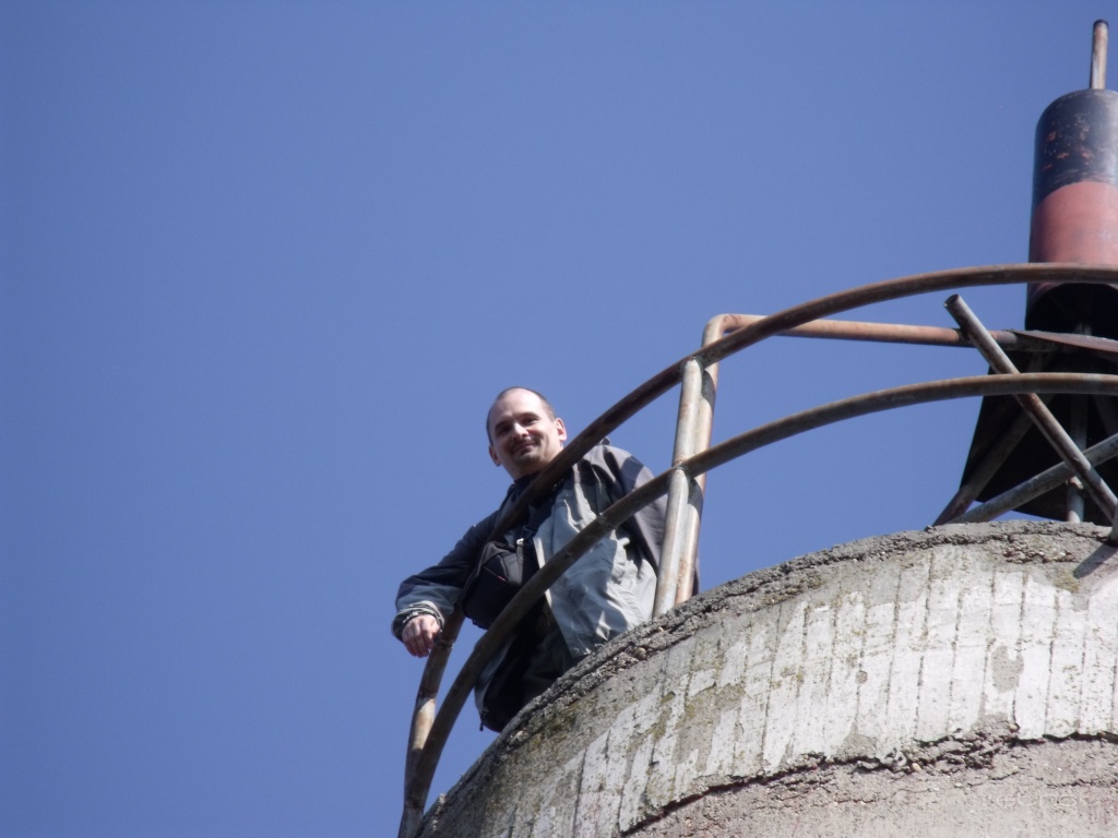 Leírás: Sárközi Szilárd (Költõ) a földmérési és térképészeti építmény tetején.