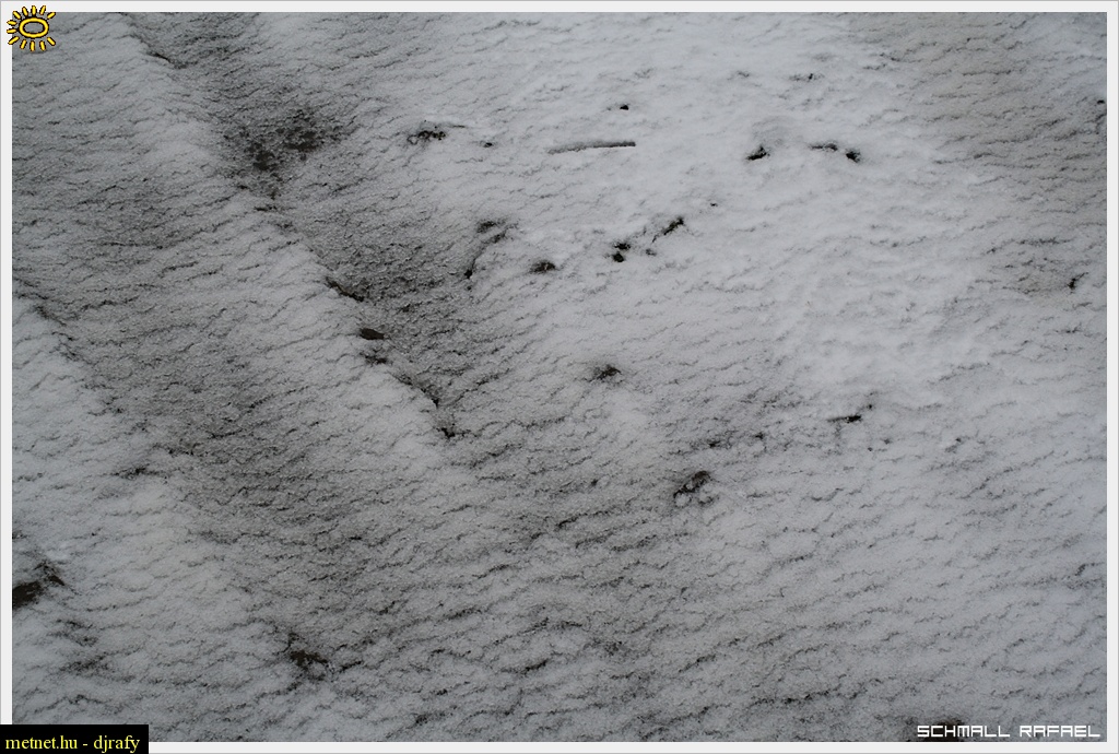 | Leírás: 2009.02.08-09 Mediterrán ciklon hatása Kaposfõre. Élénk északnyugati szél képes hordani ezt a 2cm-es havat. | |