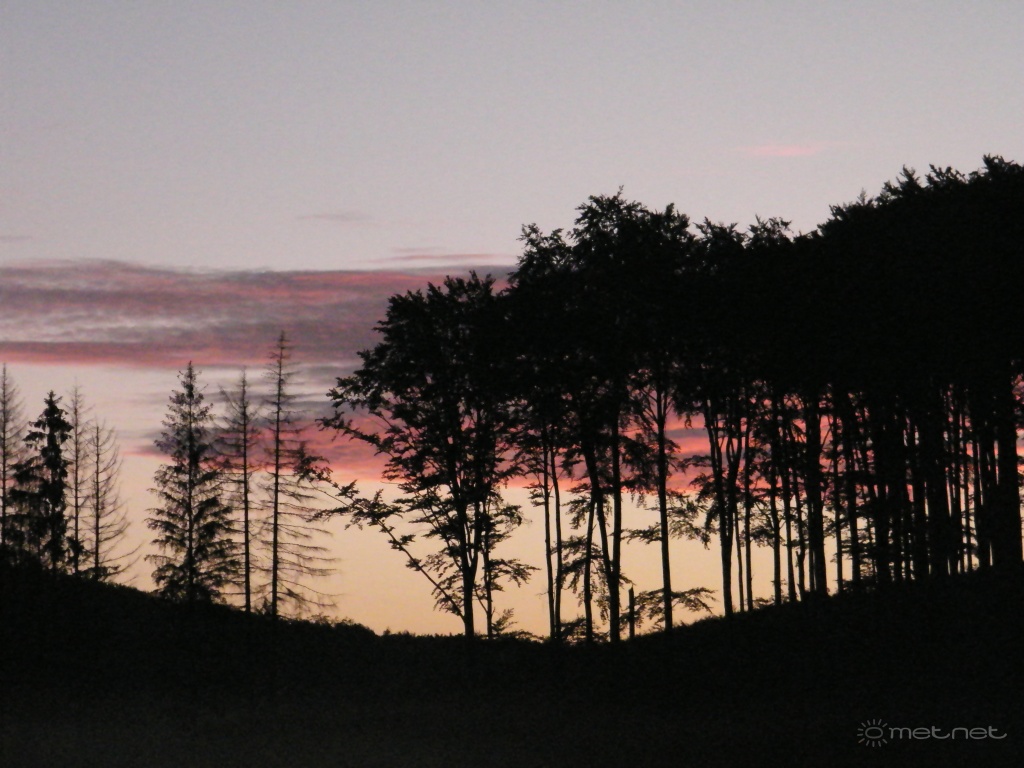 | Leírás: Bükk és fenyõ kontúr a napkelte elõtti pillanatokban. | |