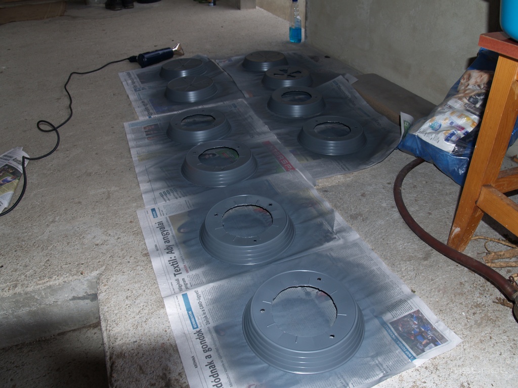 | Leírás: Folyamatban az új árnyékolóm készítése: Tányérak lealapozva, tartóvas a helyére rögzítve! | |