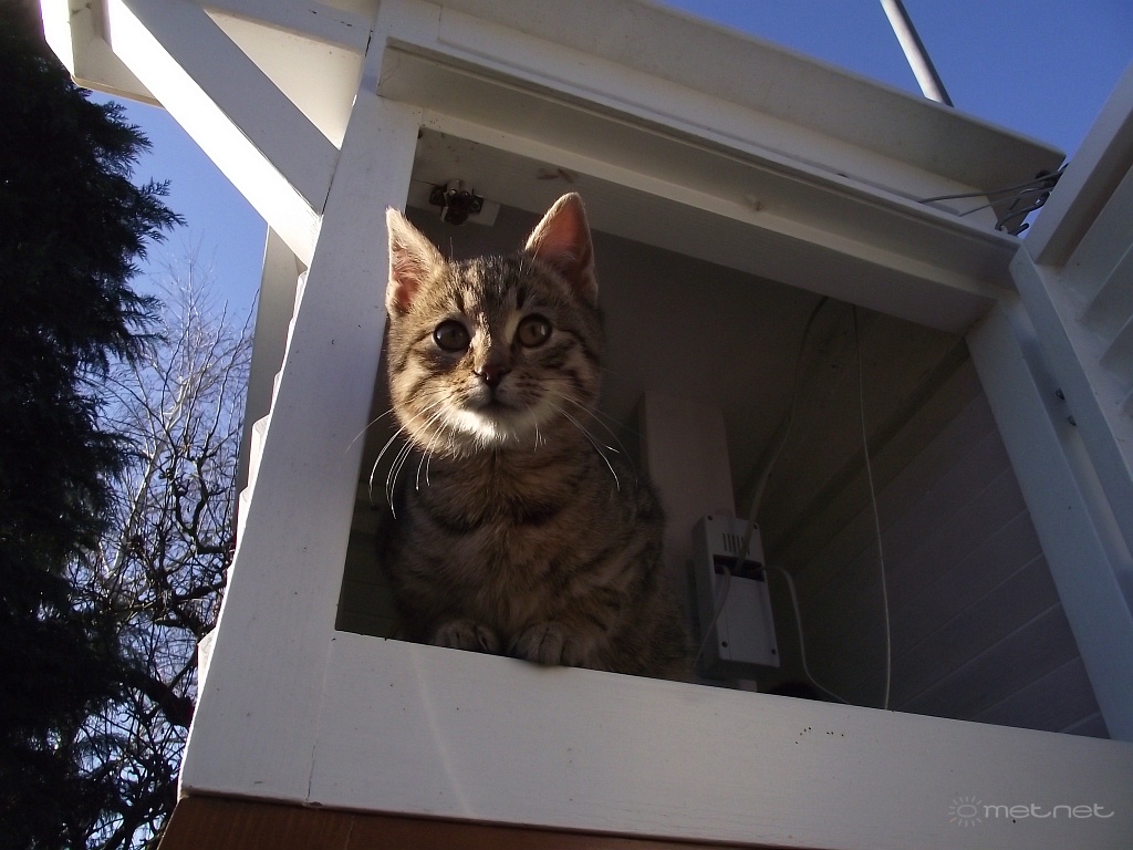 Itt a cicavízió,õ a legújabb meteorológiai megfigyelõ!Magától "esett be" a házikóba a micacica(lány)(?).