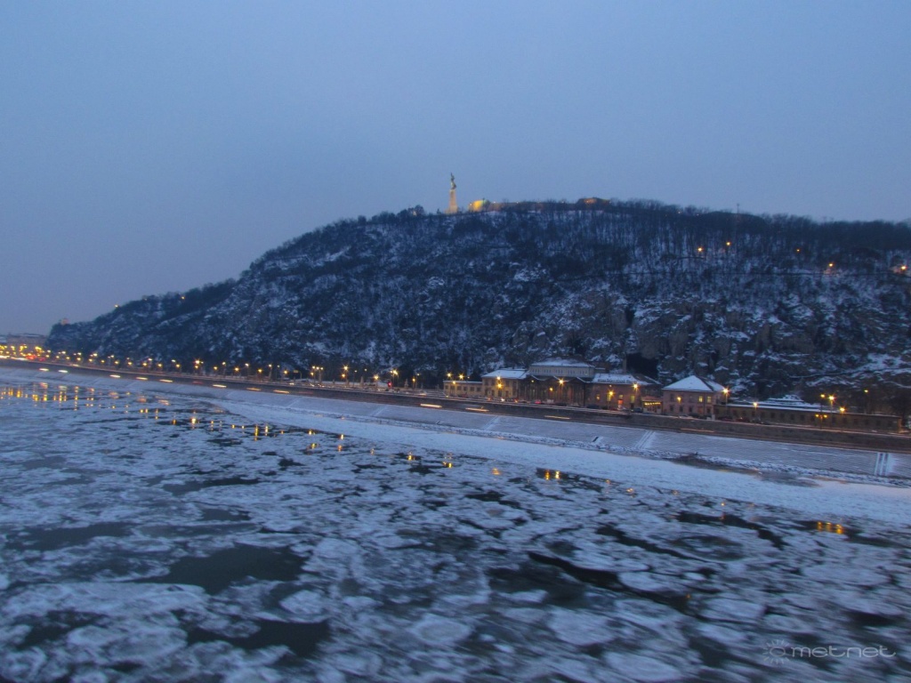 | Leírás: Erõsödõ jégzajlás a Dunán. A partnál egyre vastagabban áll be a jég. | |