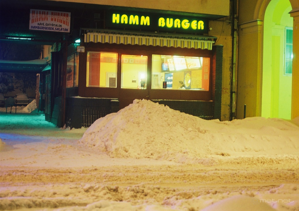 | Leírás: Hóhegy a hamburgeres elõtt. | |