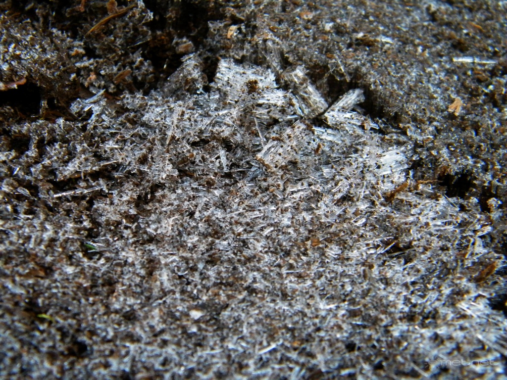 | Leírás: Fagyemelés. Az erózió egyik meghatározó eleme. Napi szinten megfigyelhetõ a fagy-változékony helyeken. | |