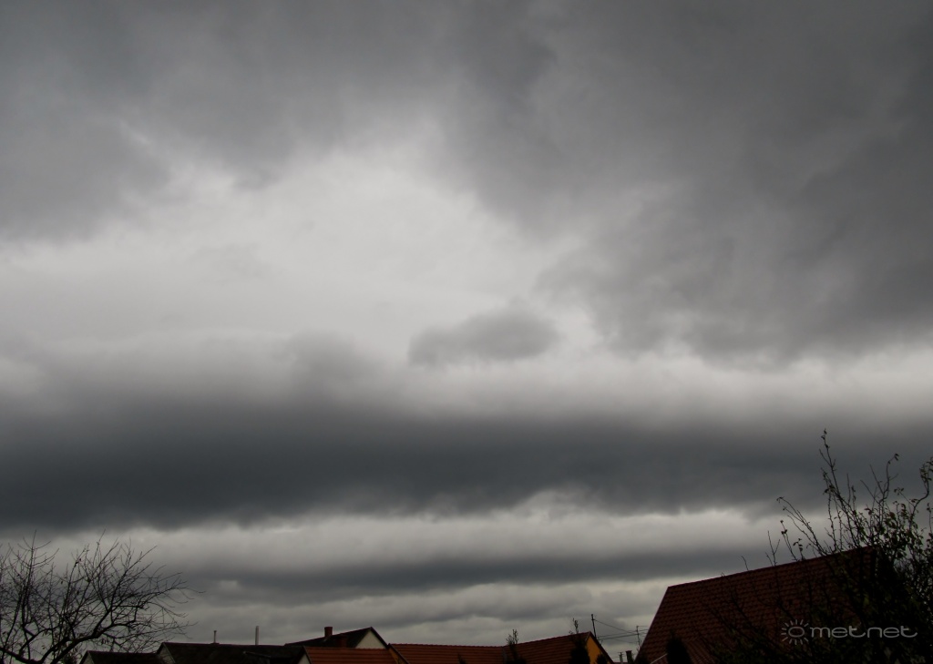 2013-11-19 19:45:45 - szélkerék21 A felvétel idõpontjában és utána egész nap nem volt számottevõ szél, viszont 11 óra tájban eleredt az esõ és 21 óráig el sem állt, végül jelentõs 25 mm csapadék esett le ez idõ alatt. A szél csak ezután érkezett meg, de akkor aztán viharos erõvel tombolt éjszaka és a következõ nap, egy közeli automata szerint 75 km/h volt a legerõsebb széllökés, a Kendig-csúcsi szélmérõ pedig 102 km/h-nál adta meg magát. (A felhõ elnevezése megfelelõ?)