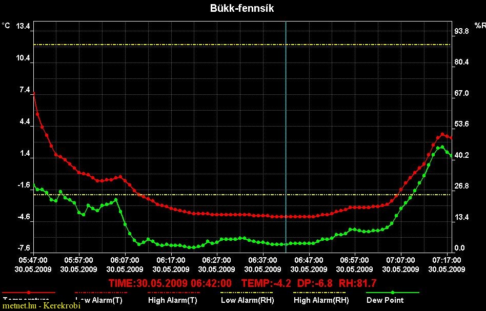 | Leírás: Bükk-fennsík fagyzug; 2009.05.30-án hajnalban. T: -4.2; TD: -7.2 fok! | |