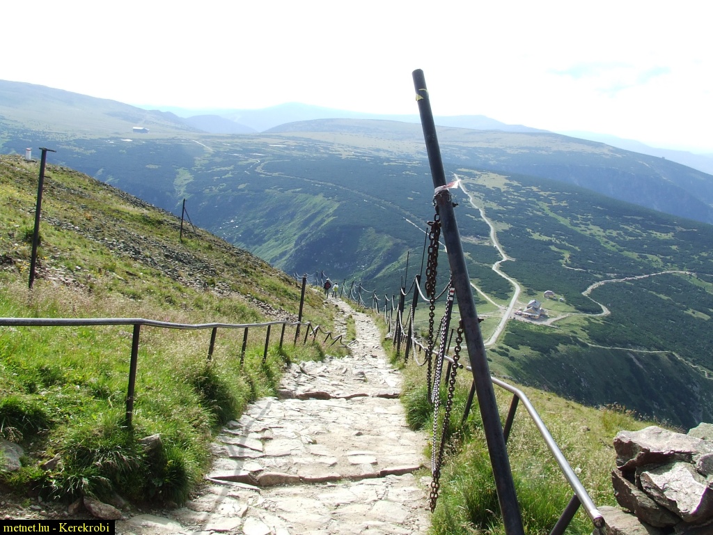 | Leírás: Láncos út a Snezka-csúcs felé. Az erõs gyalogos forgalom miatt egyirányú; csak felfelé járható. | |