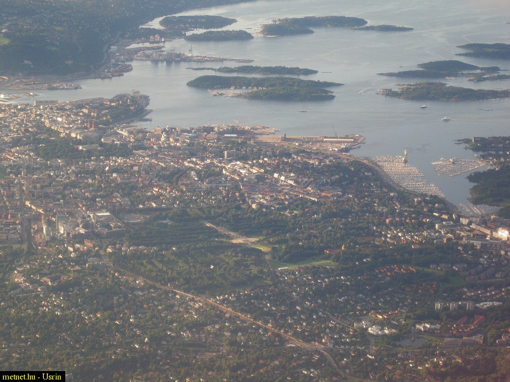 | Leírás: Oslo belvárosának látképe a Stavangerbõl érkezõ repülõgéprõl | |