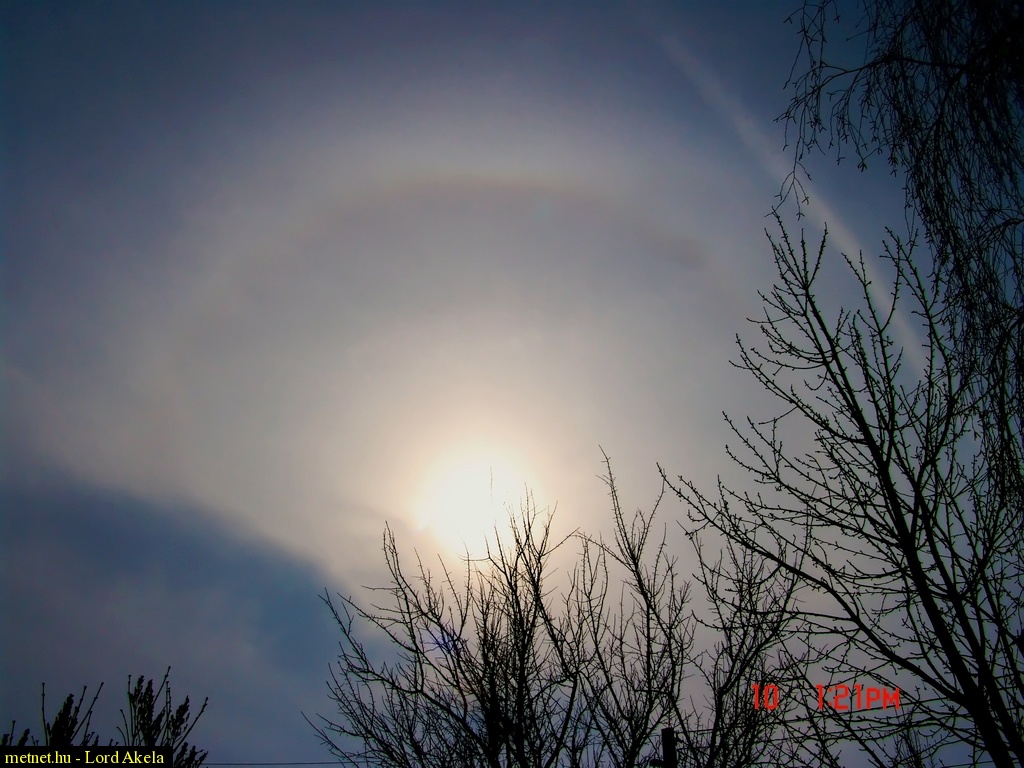 Leírás: Cca. 30 perces, változó színezésû és inzenzitású Nap-halo jelenség fotosorozatából kiválasztott legerõsebb fázis. RAW kép 1024 pixeles JPG formátumra konvertálva