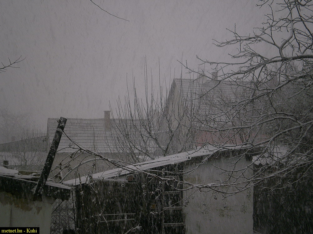 | Leírás: Hózápor, mely kb. 1 órán át tartott, néha igen intenzív szakaszokkal. /5 cm-es végeredménnyel./ | |