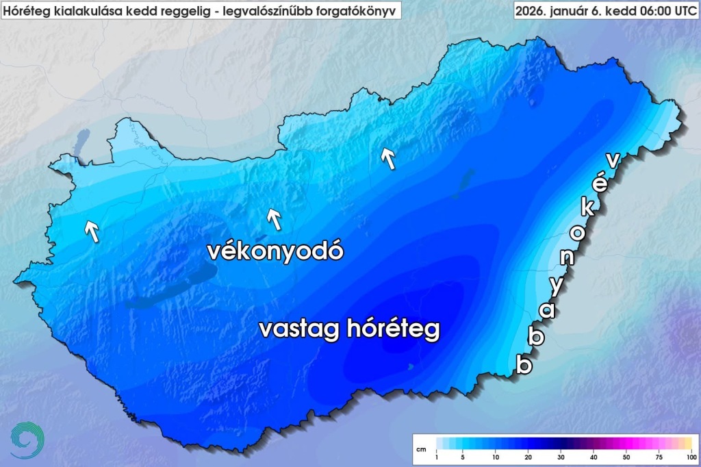 Hétfőn este melegfront érkezik, ami főként északra és keletre hoz csapadékot, zömében havat, de előfordul majd vegyes halmazállapotú csapadék is.