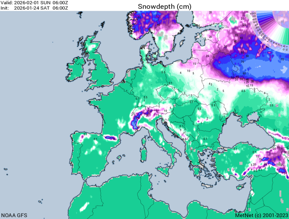 Hétfőn este melegfront érkezik, ami főként északra és keletre hoz csapadékot, zömében havat, de előfordul majd vegyes halmazállapotú csapadék is.