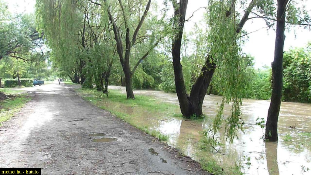 | Leírás: A felhõszakadás után; a medrébõl kilépett Hosszúréti patak | |