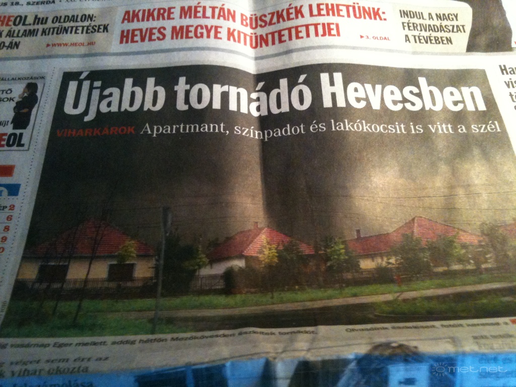Leírás: Cikkdokumentáció a sarudi tornádóról. Forrás: Heves Megyei Hírlap. Felhasználás célja: tudományos dokumentációs cél