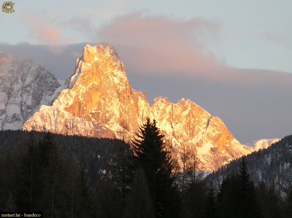Leírás: Pale di S.Martino - "aranyhegy" naplementében