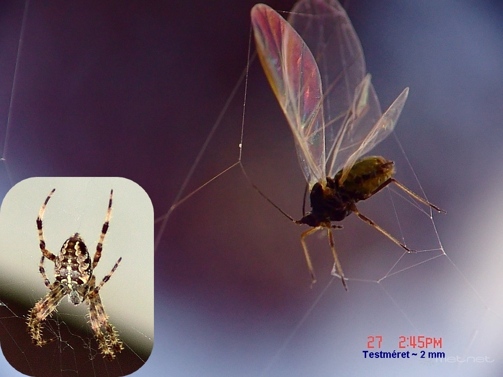 | Leírás: Még élõ szárnyas levéltetû sorsára vár. | |