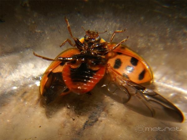 | Leírás: Harlekinkatica hasi oldala a mindenképpen megkülönböztetõ pajzs alakú sötét folttal. A többi katica hasán nincs ilyen folt! | |