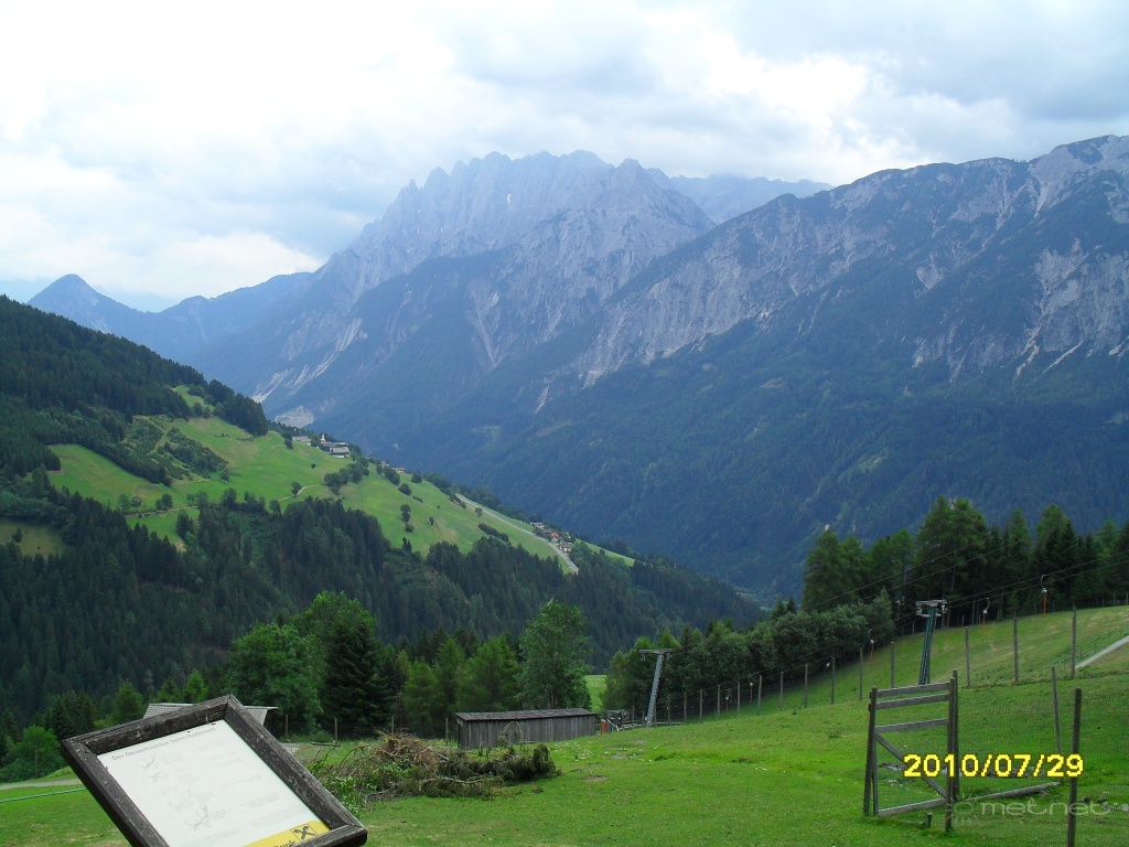 Leírás: Olaszország és Ausztria találkozása: A Dolomitok, 3000 - 4000m magas csúcsai, a képen látható hegyeken túl már Olaszország van.