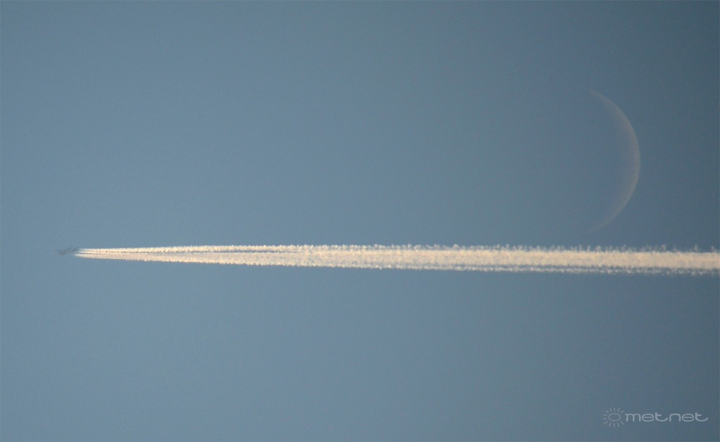 | Leírás: Az Emirátusok A380-asa valahol Somogy közepe felett repült át, kicsivel vétette csak el a Holdat... | |