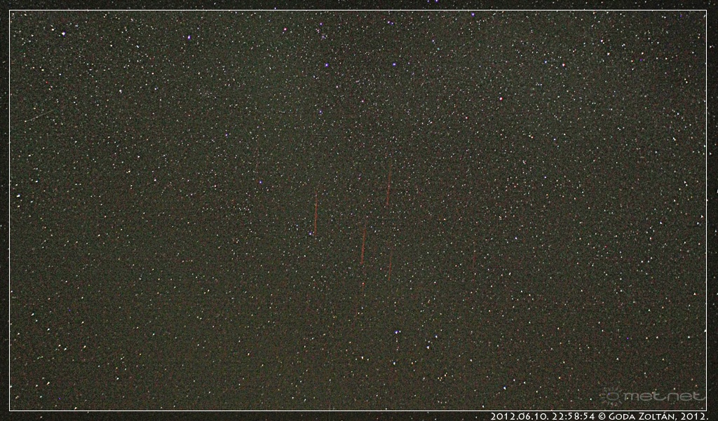 | Leírás: Vörös lidércek (red sprites) a kelet-magyarországi zivatarok felett. | |