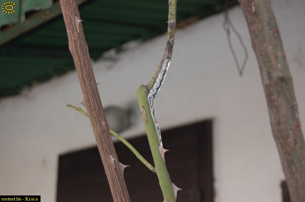 Leírás: Fagyott hó lé a rózsán.