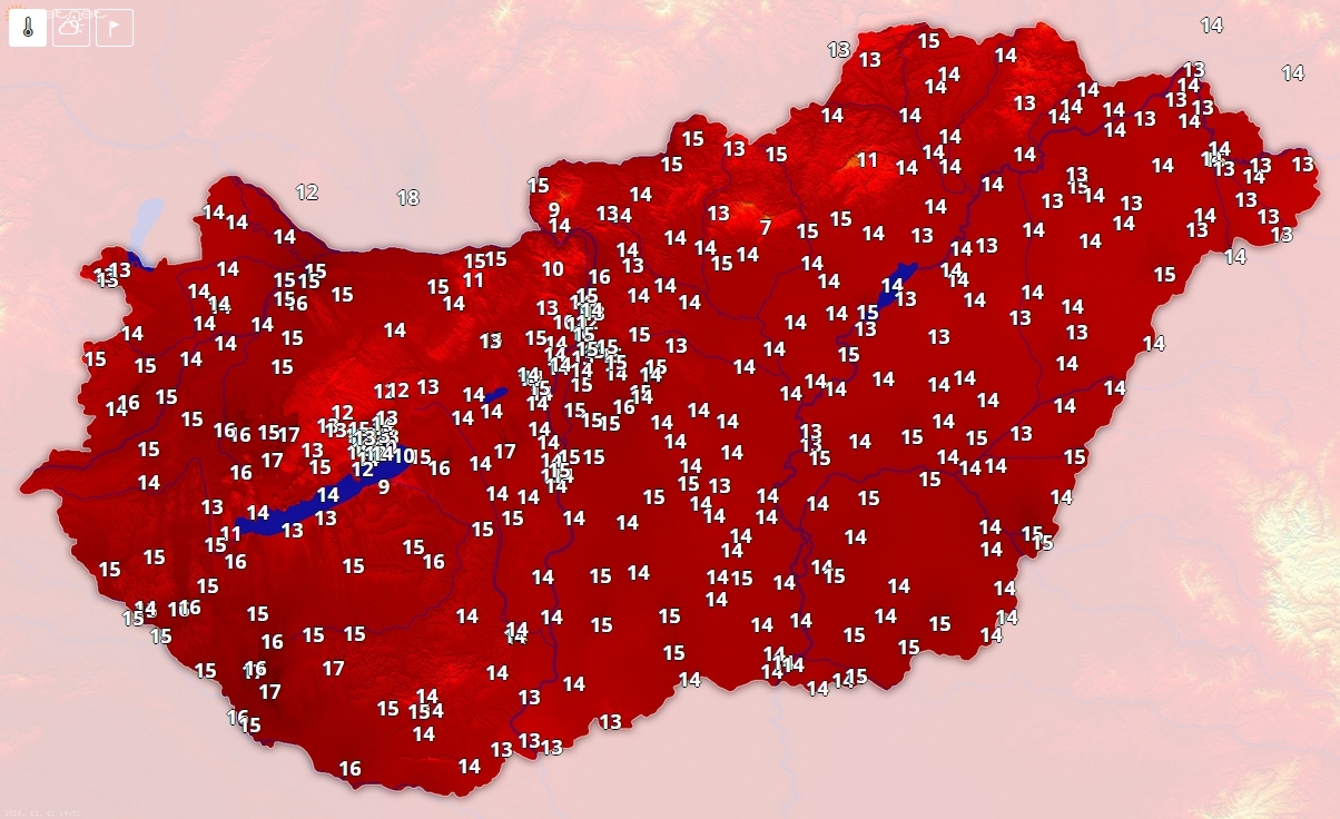 Országszerte 15 fok köré melegedett a levegő, a legmelegebb nyugati tájakon 17 fokot is mérnek.